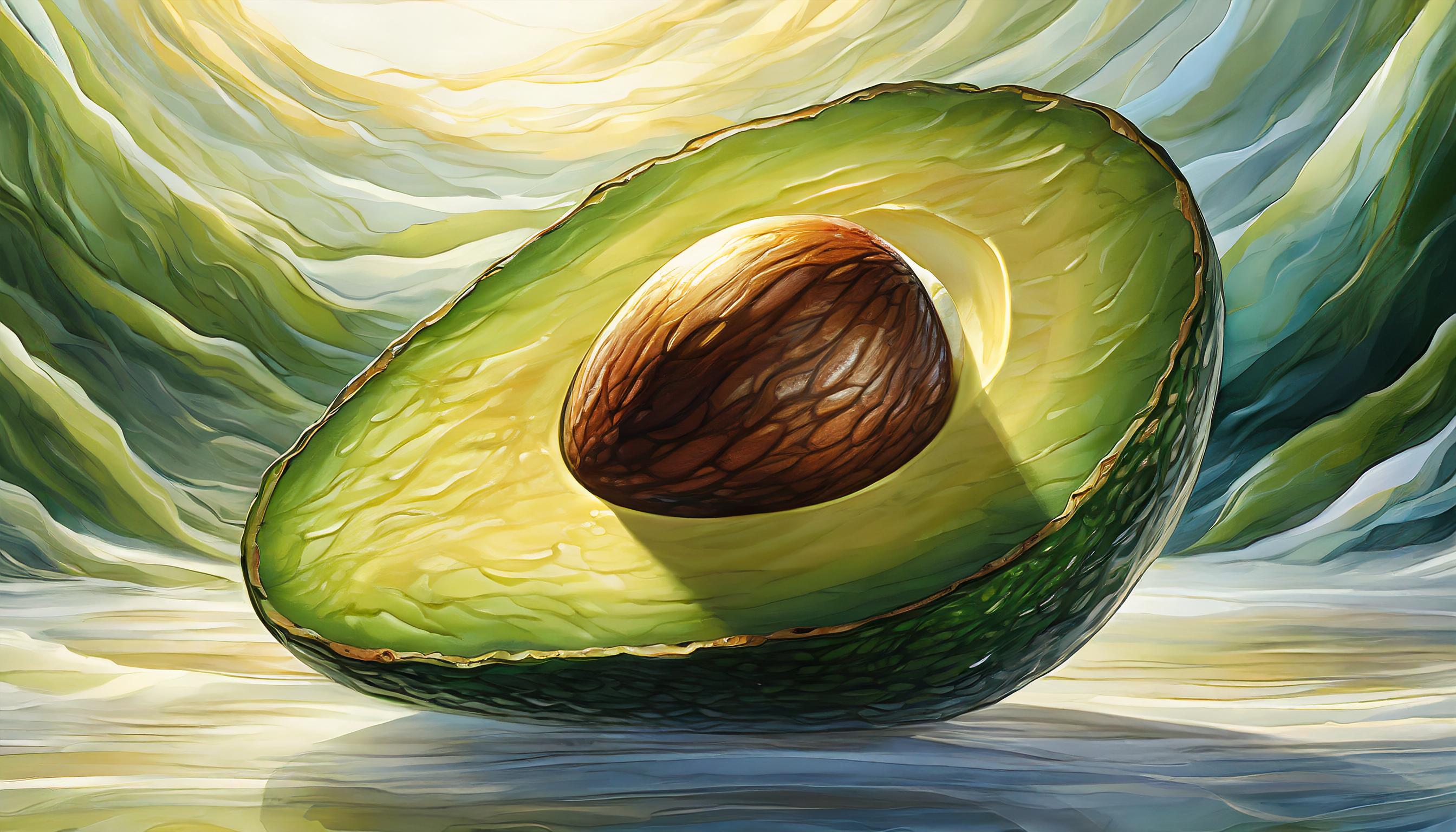 A very detailed and realistic image of an Avocado isolated on a plain white background. The fruit fills the entire frame without exceeding the borders, undivided and solitary. The image's precision showcases the texture of the skin vividly. The Avocado is illuminated by soft light, highlighting its shape but devoid of any leaves. The focus is on capturing the Avocado's surface texture and overall form in high detail.