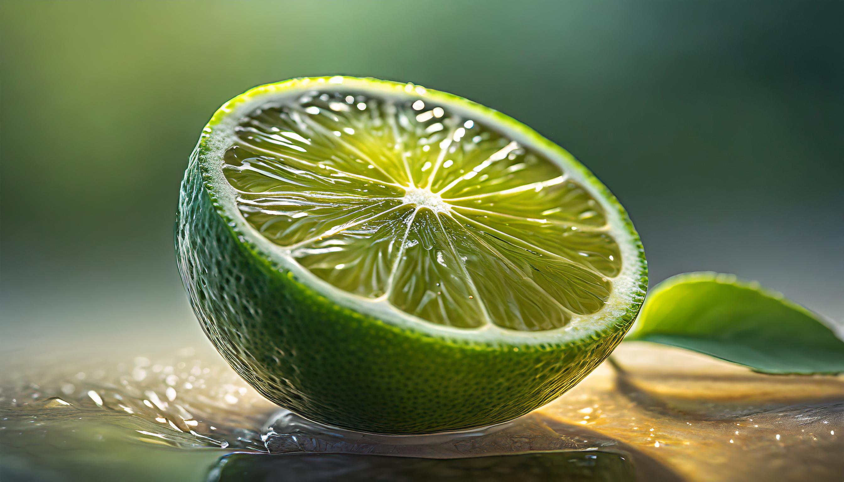 A very detailed and realistic image of a single, whole lime isolated on a plain white background. The lime occupies the entire frame without overflowing. The lime is not cut in half, showcasing a single, uncut lime. The image is very precise, highlighting the texture of the lime's skin. The lime is illuminated by soft light, enhancing its shape. There are no leaves attached to the lime.