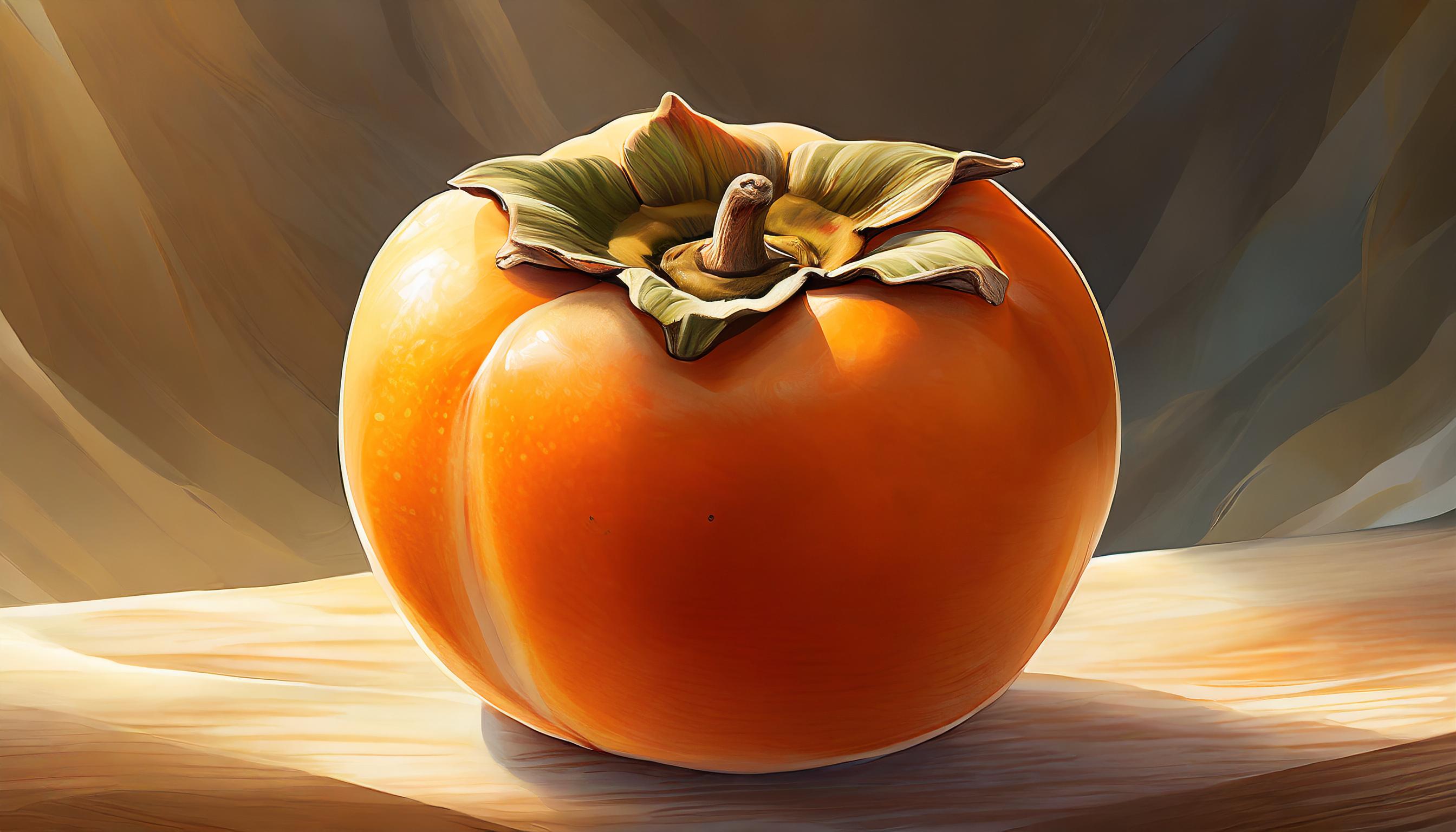 A very detailed and realistic image of a persimmon isolated on a plain white background. The fruit occupies the entire frame without exceeding it, with no overflow. A whole persimmon, not cut in half, and there is only one persimmon. The image is very precise, allowing the texture of the skin to be appreciated. The persimmon is illuminated by soft light, still highlighting its shape. The persimmon has no leaves.