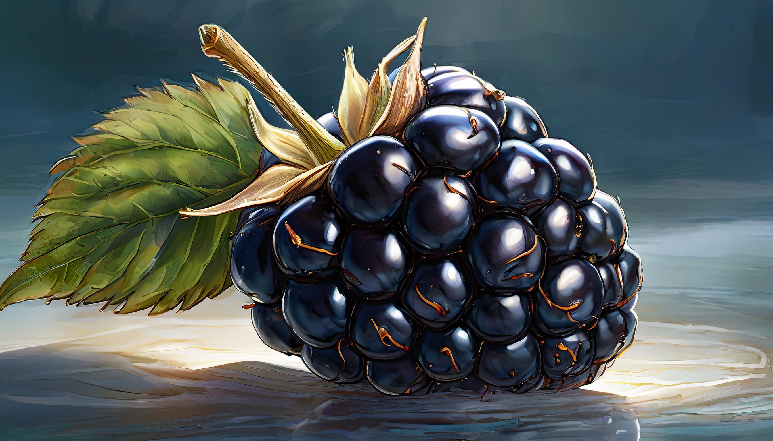 A highly detailed and realistic image of a single blackberry isolated on a plain white background. The fruit fills the entire frame without overflowing or going beyond the edges. The blackberry is whole, not cut in half, and there is only one blackberry in the image. The image is very precise, showcasing the texture of the skin. The blackberry is illuminated by a soft light, which still highlights its shape. The blackberry has no leaves. The focus is on capturing the intricate details and texture of the blackberry's surface.