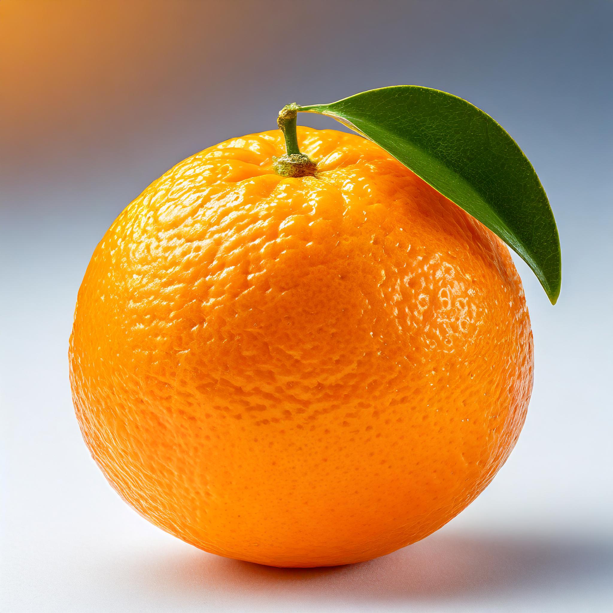 A highly detailed and realistic image of a single, whole orange fruit isolated on a plain white background, filling the entire frame without exceeding its boundaries. The orange is not cut in half, and there's only one orange in the image. The image is very precise, showcasing the granular texture of the skin. The orange is illuminated by a soft light that still highlights its round shape, and the orange is devoid of any leaves.