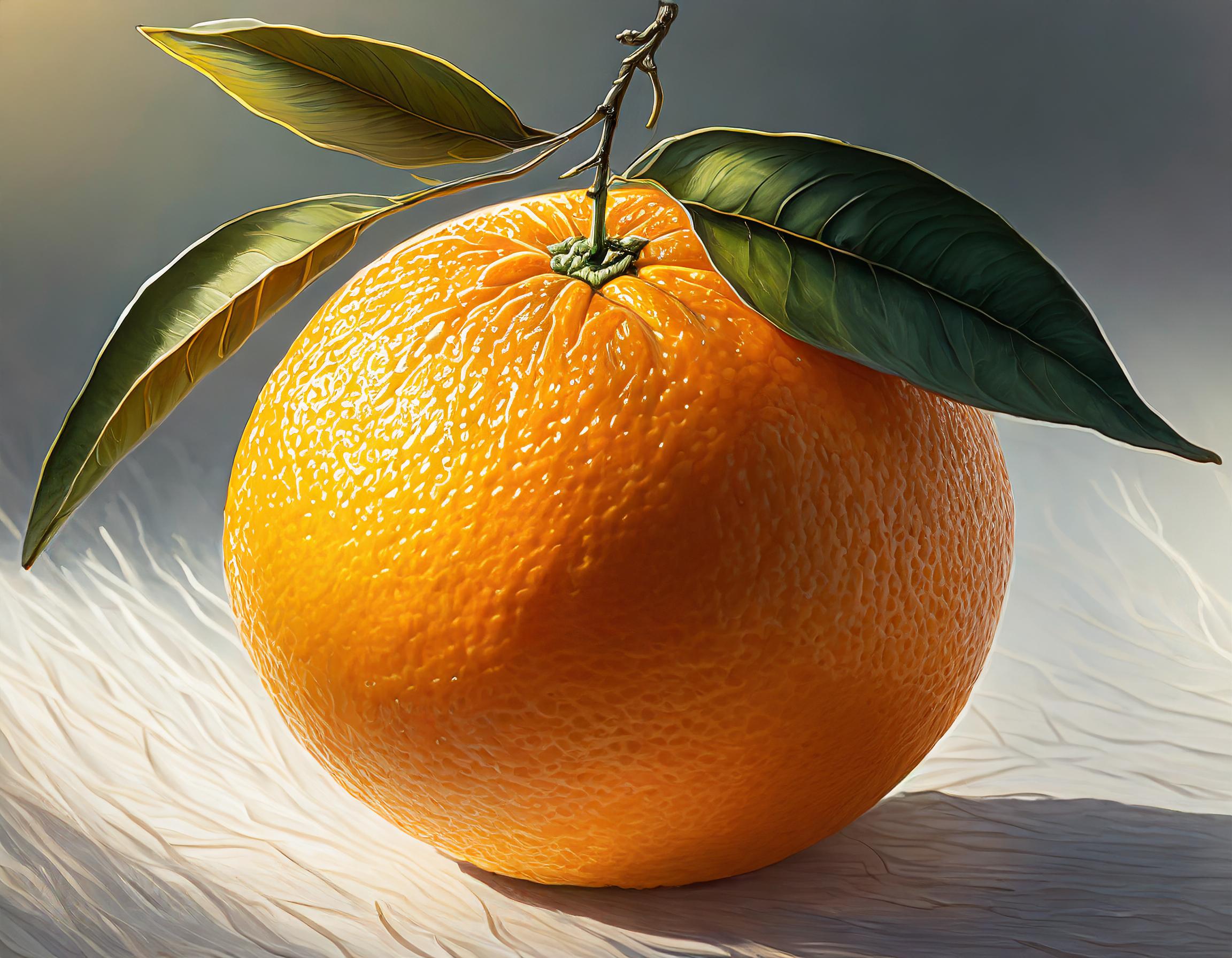 Une image très détaillée et réaliste d'un seul fruit orange entier isolé sur un fond blanc uni, remplissant entièrement le cadre sans dépasser ses limites. L'orange n'est pas coupée en deux, et il n'y a qu'une seule orange dans l'image. L'image est très précise, mettant en évidence la texture granuleuse de la peau. L'orange est éclairée par une lumière douce qui souligne néanmoins sa forme ronde, et l'orange est dépourvue de feuilles.