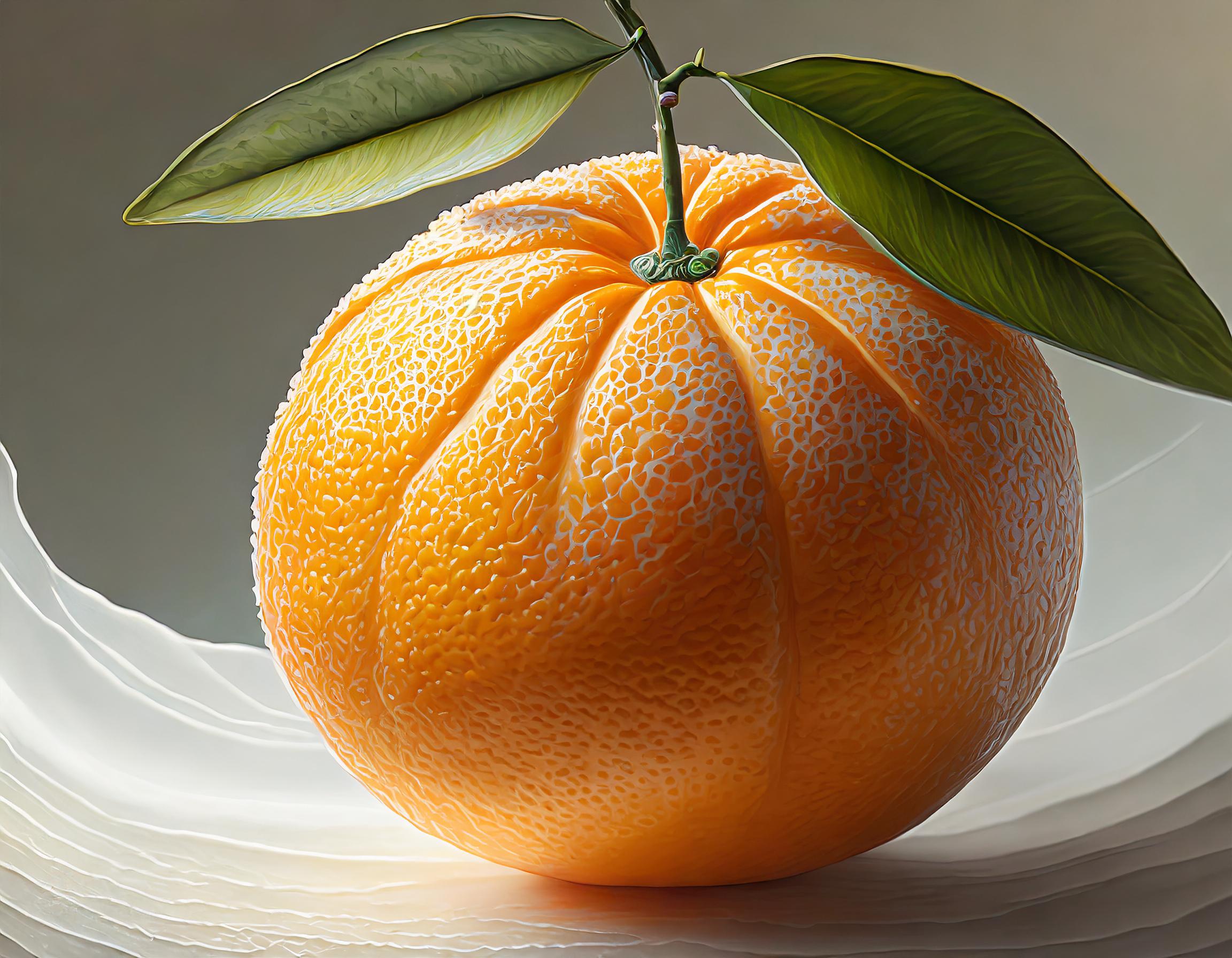 Une image très détaillée et réaliste d'un seul fruit orange entier isolé sur un fond blanc uni, remplissant entièrement le cadre sans dépasser ses limites. L'orange n'est pas coupée en deux, et il n'y a qu'une seule orange dans l'image. L'image est très précise, mettant en évidence la texture granuleuse de la peau. L'orange est éclairée par une lumière douce qui souligne néanmoins sa forme ronde, et l'orange est dépourvue de feuilles.