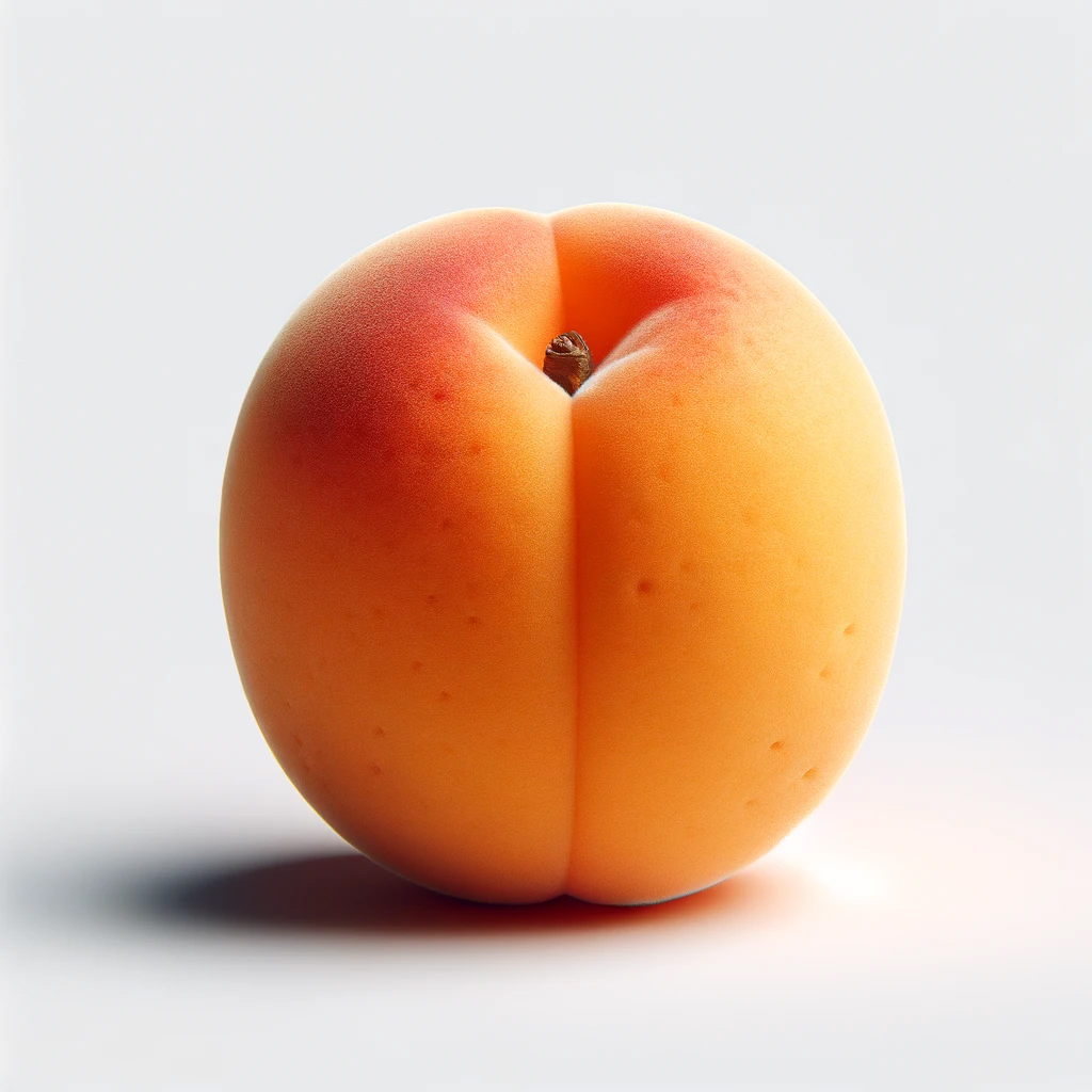 Une image très détaillée et réaliste d'un seul abricot entier isolé sur un fond blanc uni. Le fruit remplit entièrement le cadre sans dépasser ses limites. L'abricot n'est pas coupé, avec un seul abricot présent dans l'image. L'image est très précise, mettant en valeur la texture de la peau de l'abricot. L'abricot est éclairé par une lumière douce, qui souligne sa forme. L'abricot n'a pas de feuilles.