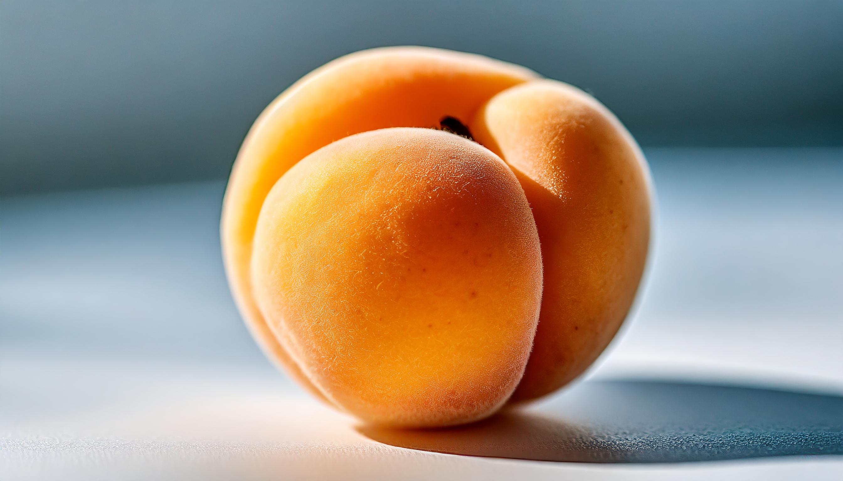 Une image très détaillée et réaliste d'un seul abricot entier isolé sur un fond blanc uni. Le fruit remplit entièrement le cadre sans dépasser ses limites. L'abricot n'est pas coupé, avec un seul abricot présent dans l'image. L'image est très précise, mettant en valeur la texture de la peau de l'abricot. L'abricot est éclairé par une lumière douce, qui souligne sa forme. L'abricot n'a pas de feuilles.