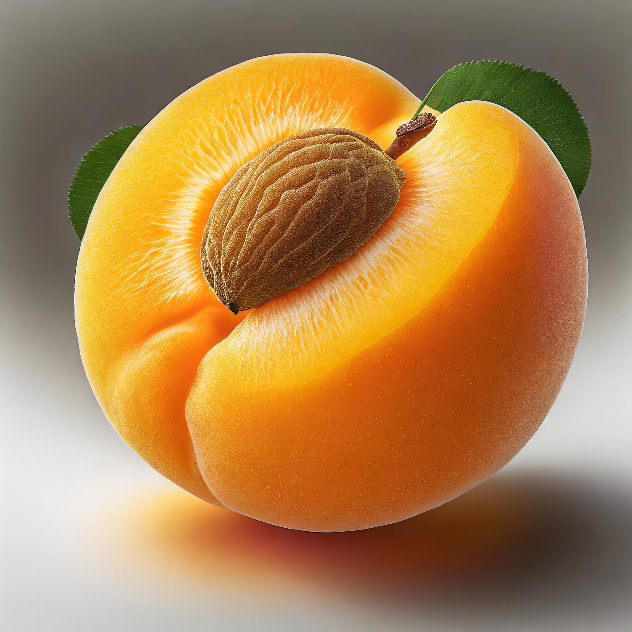 A highly detailed and realistic image of a single whole apricot isolated on a plain white background. The fruit fills the entire frame without exceeding its boundaries. The apricot is uncut, with only one apricot present in the image. The image is highly precise, showcasing the texture of the apricot's skin. The apricot is illuminated by soft light, which highlights its shape. The apricot does not have any leaves.
