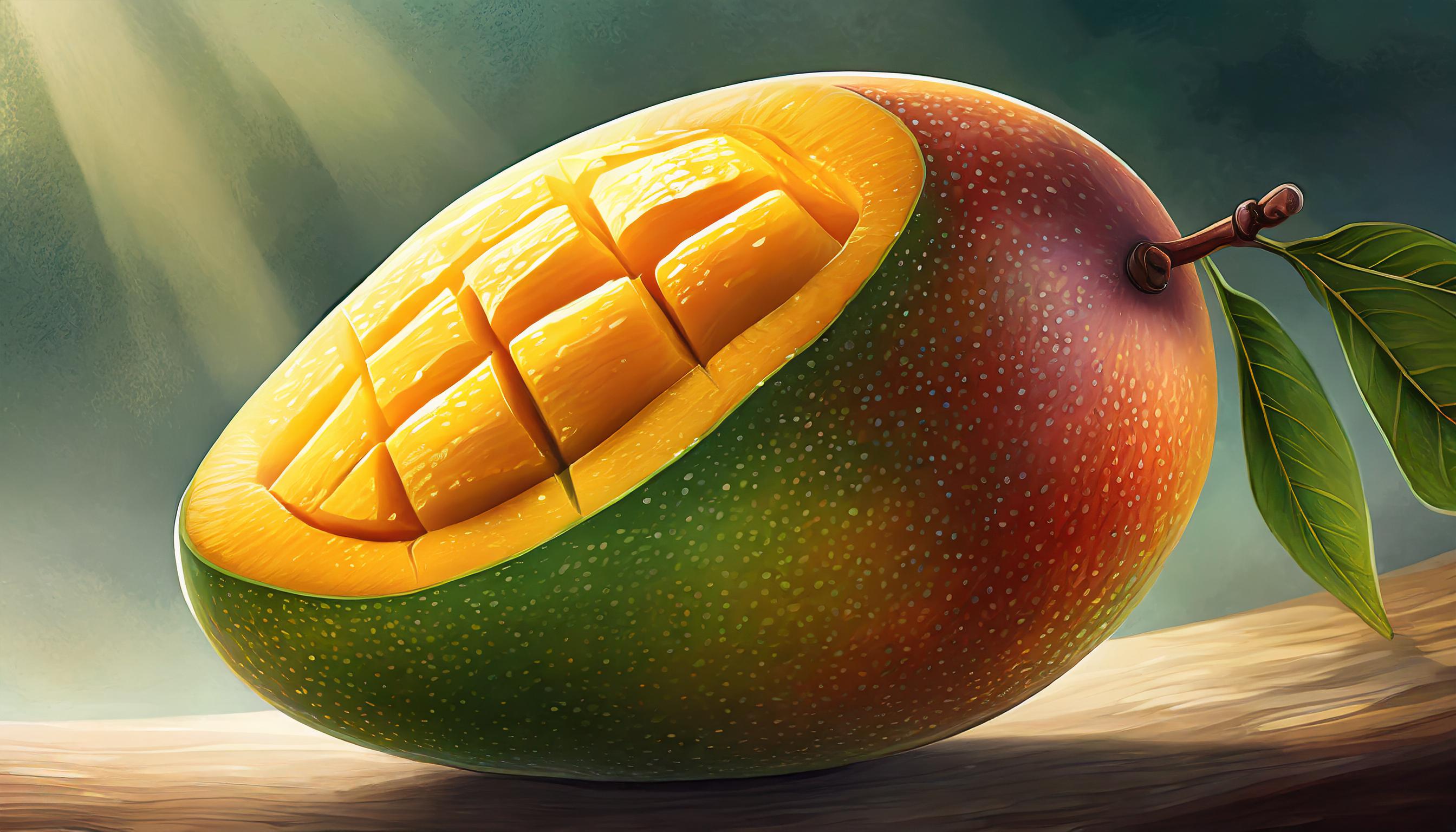 A highly detailed and realistic image of a single mango isolated on a plain white background. The fruit occupies the entire frame without exceeding its boundaries. The mango is whole, not cut in half, and there is only one mango. The image is very precise, showcasing the texture of the mango's skin. The mango is illuminated by soft light, highlighting its shape without leaves.