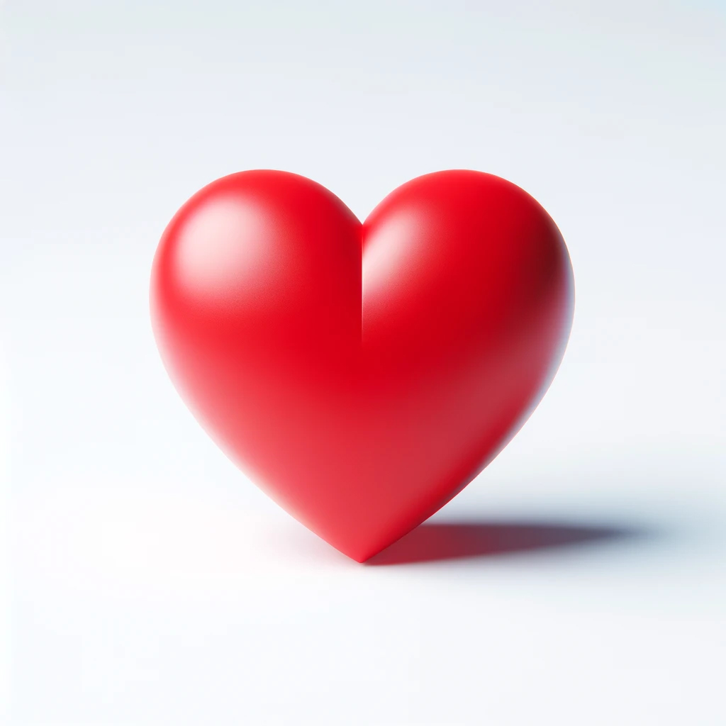 Sur un fond totalement blanc et uni, un cœur rouge en 2 dimensions prenant la totalité du cadre tout en restant entier.
