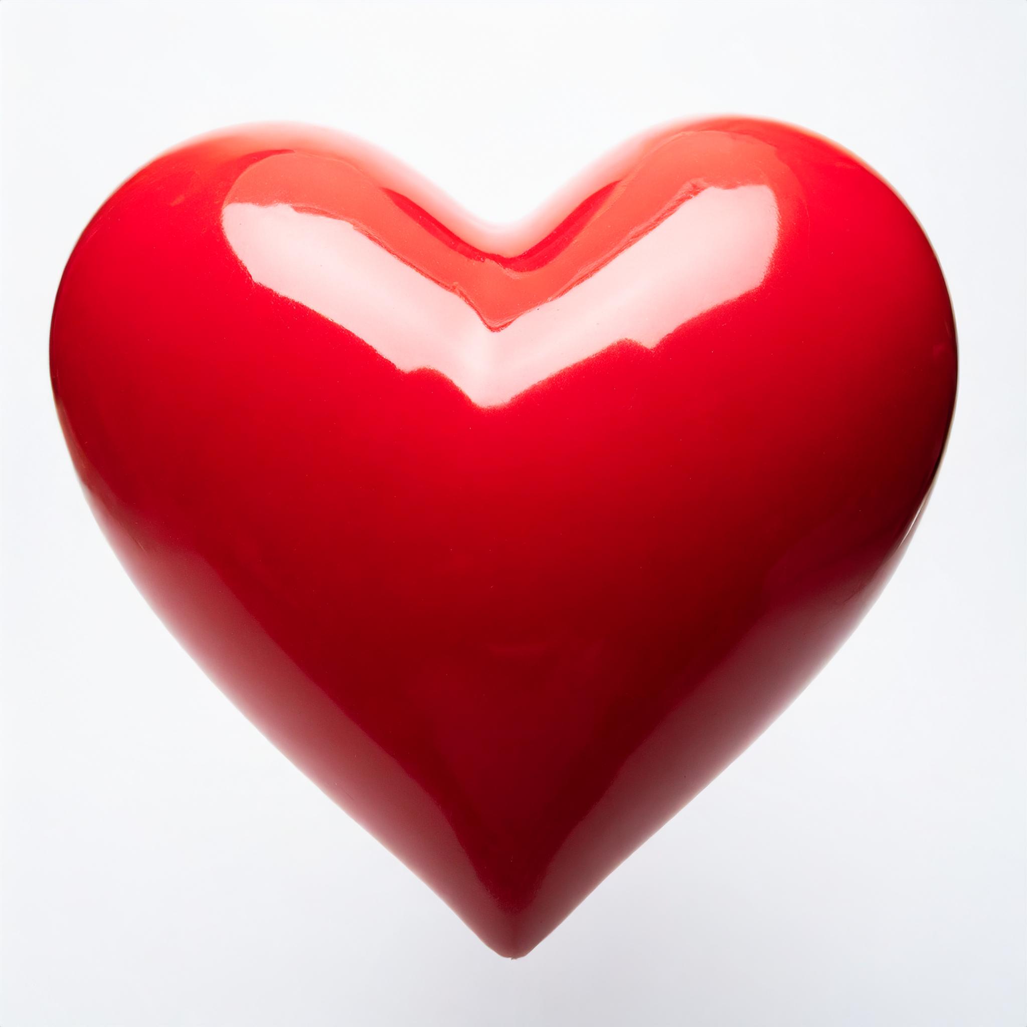 On a completely white and uniform background, a two-dimensional red heart taking up the entire frame while remaining whole.