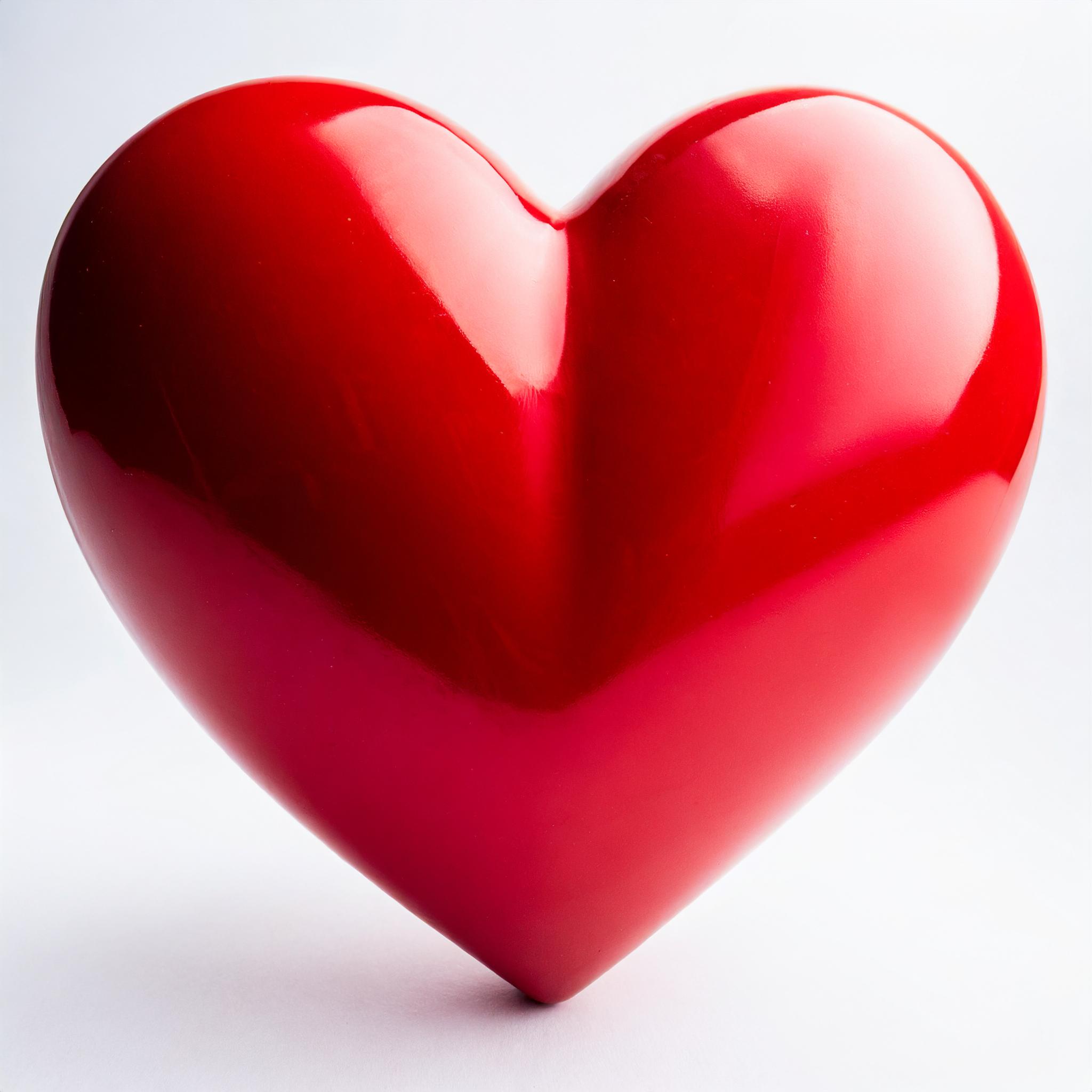 Sur un fond complètement blanc et uniforme, un cœur rouge bidimensionnel occupant tout le cadre tout en restant entier.