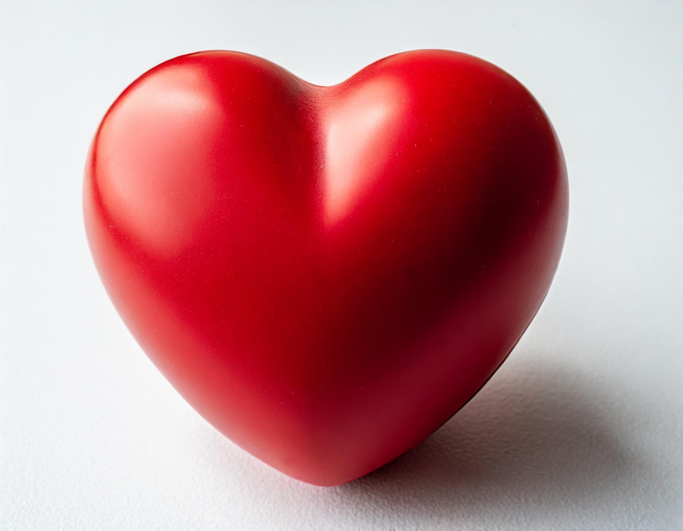 Sur un fond complètement blanc et uniforme, un cœur rouge bidimensionnel occupant tout le cadre tout en restant entier.