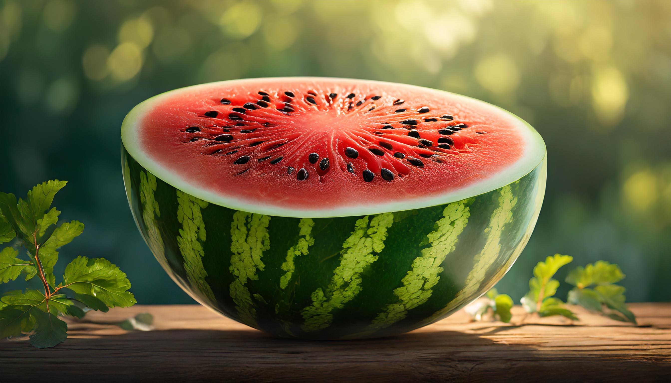 A highly detailed and realistic image of a watermelon isolated on a solid white background. The fruit occupies the entire frame without exceeding its boundaries. It's a whole, uncut watermelon, and there is only one watermelon. The image is very precise, enabling appreciation of the skin's texture. The watermelon is illuminated by soft light, which still highlights its shape. The watermelon has no leaves.
