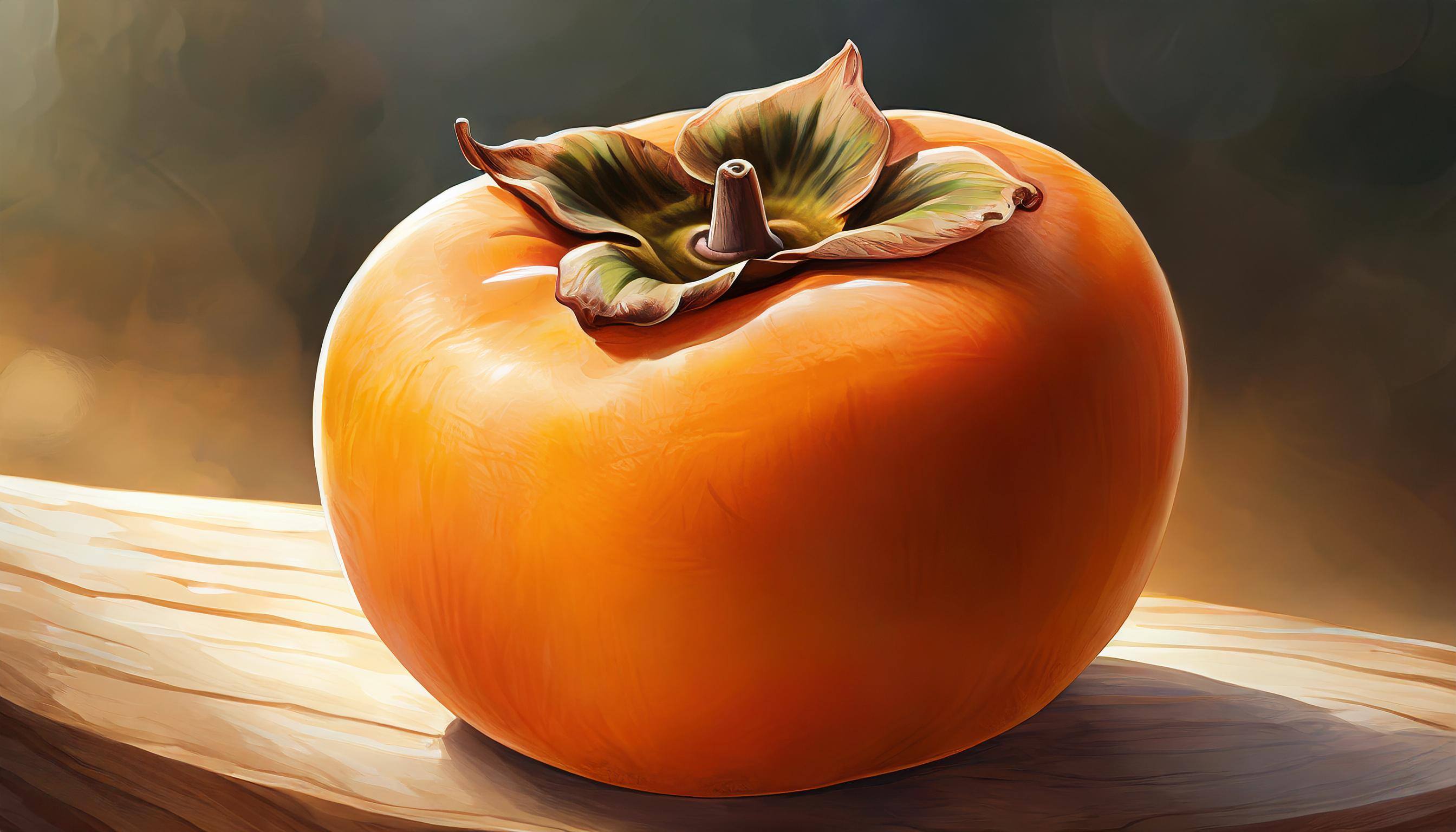 A very detailed and realistic image of a persimmon isolated on a plain white background. The fruit occupies the entire frame without exceeding it, with no overflow. A whole persimmon, not cut in half, and there is only one persimmon. The image is very precise, allowing the texture of the skin to be appreciated. The persimmon is illuminated by soft light, still highlighting its shape. The persimmon has no leaves.