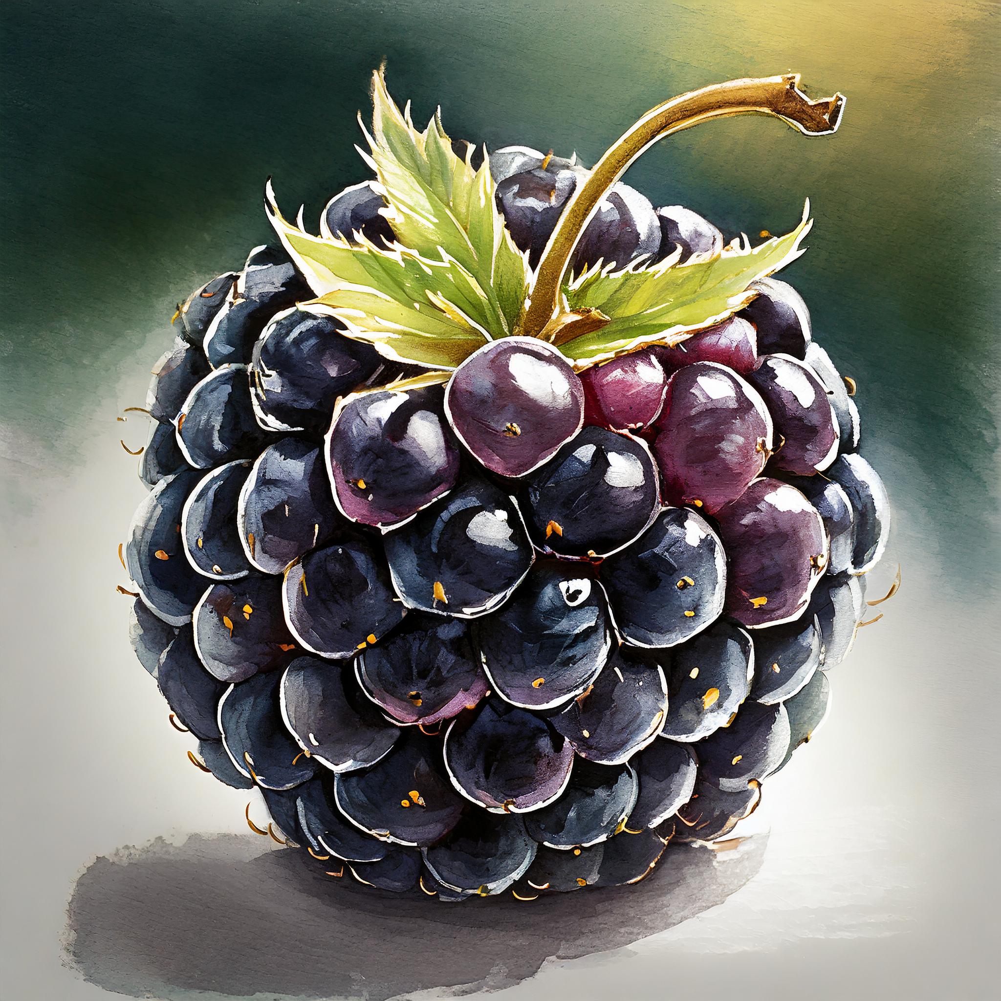 Une image très détaillée et réaliste d'une seule mûre isolée sur un fond blanc uni. Le fruit remplit entièrement le cadre sans déborder ou aller au-delà des bords. La mûre est entière, non coupée en deux, et il n'y a qu'une seule mûre dans l'image. L'image est très précise, mettant en avant la texture de la peau. La mûre est éclairée par une lumière douce, qui met tout de même en valeur sa forme. La mûre n'a pas de feuilles. L'accent est mis sur la capture des détails complexes et de la texture de la surface de la mûre.
