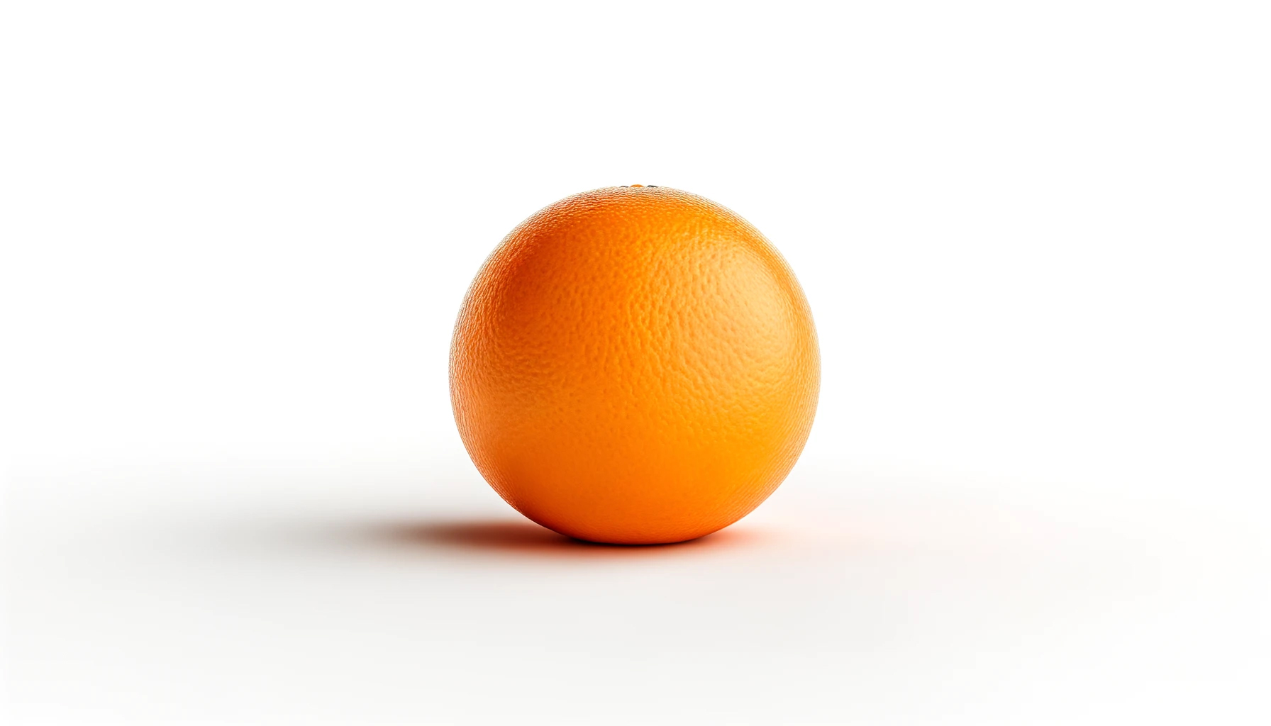 Une image très détaillée et réaliste d'un seul fruit orange entier isolé sur un fond blanc uni, remplissant entièrement le cadre sans dépasser ses limites. L'orange n'est pas coupée en deux, et il n'y a qu'une seule orange dans l'image. L'image est très précise, mettant en évidence la texture granuleuse de la peau. L'orange est éclairée par une lumière douce qui souligne néanmoins sa forme ronde, et l'orange est dépourvue de feuilles.