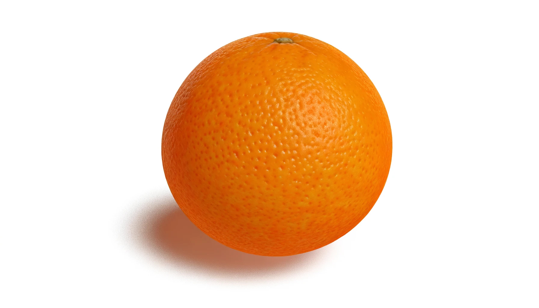 A highly detailed and realistic image of a single, whole orange fruit isolated on a plain white background, filling the entire frame without exceeding its boundaries. The orange is not cut in half, and there's only one orange in the image. The image is very precise, showcasing the granular texture of the skin. The orange is illuminated by a soft light that still highlights its round shape, and the orange is devoid of any leaves.