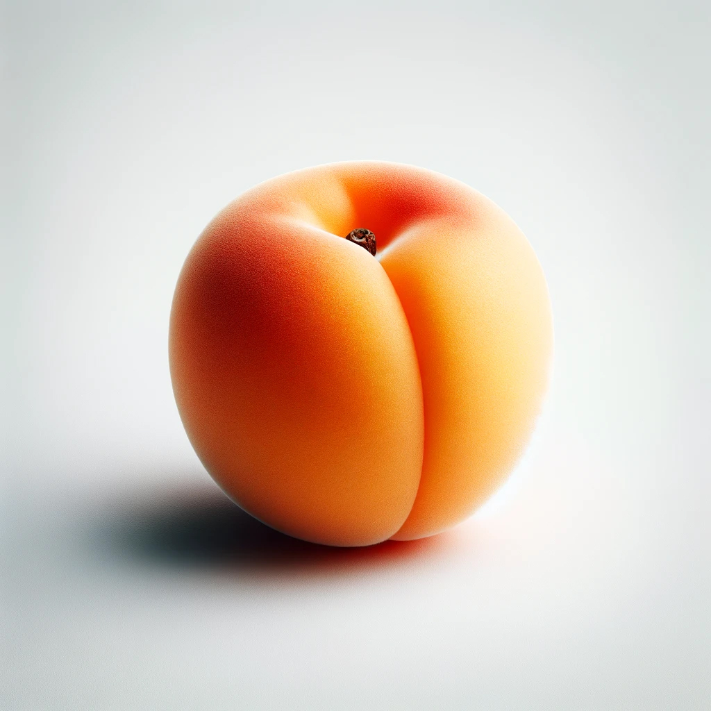 Une image très détaillée et réaliste d'un seul abricot entier isolé sur un fond blanc uni. Le fruit remplit entièrement le cadre sans dépasser ses limites. L'abricot n'est pas coupé, avec un seul abricot présent dans l'image. L'image est très précise, mettant en valeur la texture de la peau de l'abricot. L'abricot est éclairé par une lumière douce, qui souligne sa forme. L'abricot n'a pas de feuilles.