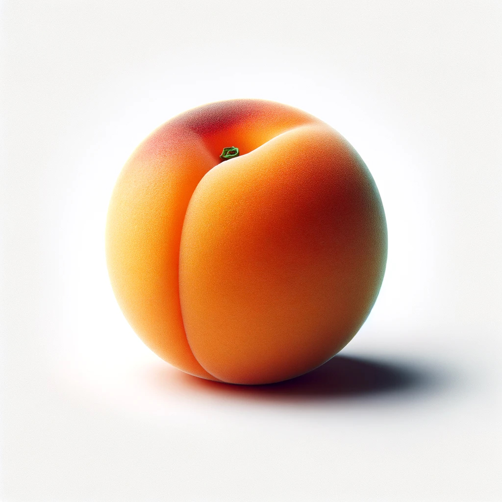 Une image très détaillée et réaliste d'un seul abricot entier isolé sur un fond blanc uni. Le fruit remplit entièrement le cadre sans dépasser ses limites. L'abricot n'est pas coupé, avec un seul abricot présent dans l'image. L'image est très précise, mettant en valeur la texture de la peau de l'abricot. L'abricot est éclairé par une lumière douce, qui souligne sa forme. L'abricot n'a pas de feuilles.