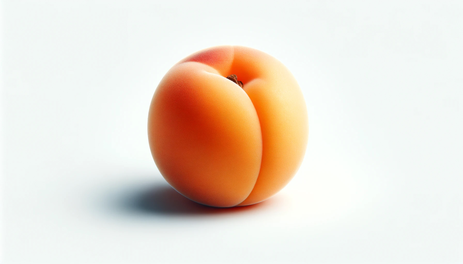 Une image très détaillée et réaliste d'un seul abricot entier isolé sur un fond blanc uni. Le fruit remplit entièrement le cadre sans dépasser ses limites. L'abricot n'est pas coupé, avec un seul abricot présent dans l'image. L'image est très précise, mettant en valeur la texture de la peau de l'abricot. L'abricot est éclairé par une lumière douce, qui souligne sa forme. L'abricot n'a pas de feuilles.