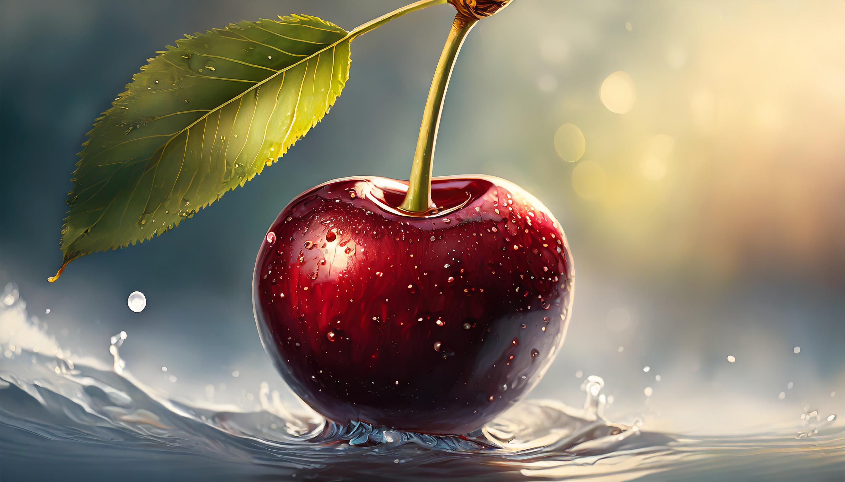 Une image très détaillée et réaliste d'une seule cerise isolée sur un fond blanc uni. Le fruit remplit l'ensemble du cadre sans le dépasser, parfaitement contenu dans les limites. C'est une cerise entière, pas coupée en deux, et il n'y en a qu'une. L'image est très précise, mettant en valeur la texture de la peau de la cerise. La cerise est illuminée par une lumière douce qui parvient encore à souligner sa forme. Il n'y a pas de feuilles attachées à la cerise.