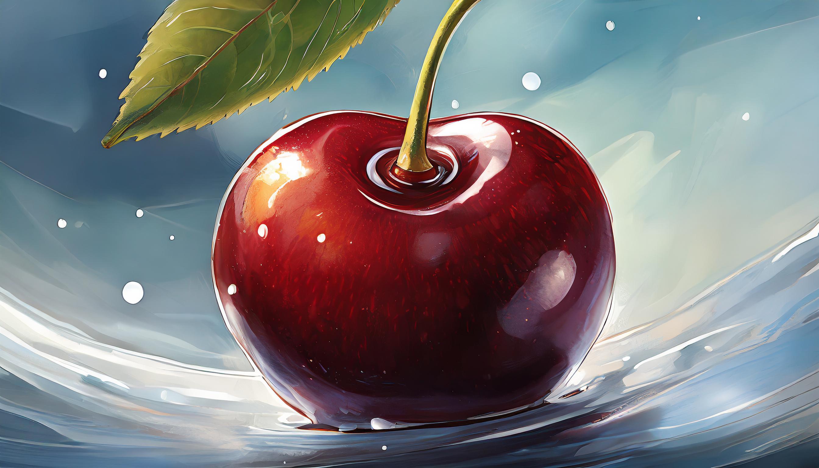A highly detailed and realistic image of a single cherry isolated on a plain white background. The fruit fills the entire frame without exceeding it, perfectly contained within the boundaries. It's a whole cherry, not cut in half, and there's only one. The image is very precise, showcasing the texture of the cherry's skin. The cherry is illuminated by a soft light that still manages to highlight its shape. There are no leaves attached to the cherry.