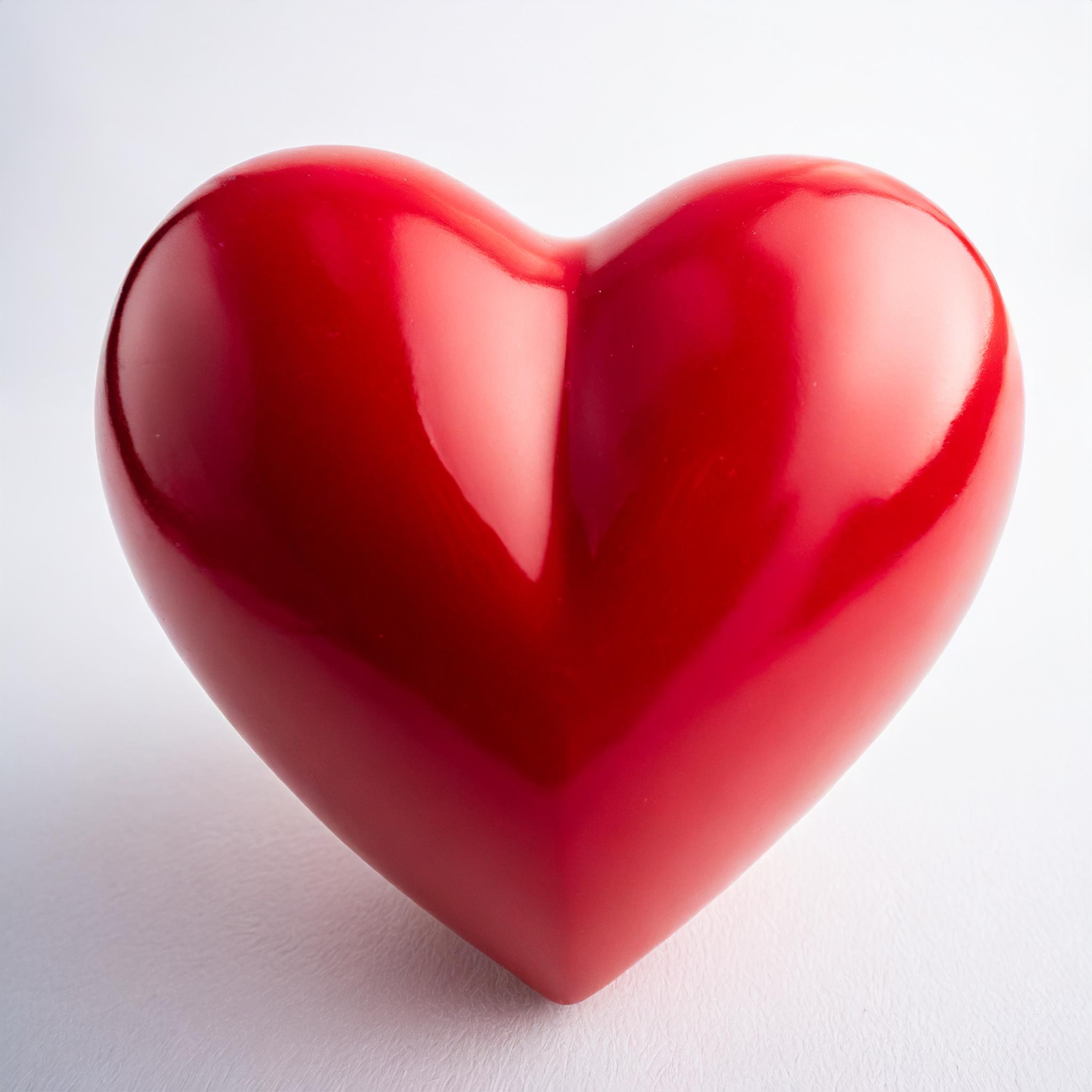 Sur un fond complètement blanc et uniforme, un cœur rouge bidimensionnel occupant tout le cadre tout en restant entier.