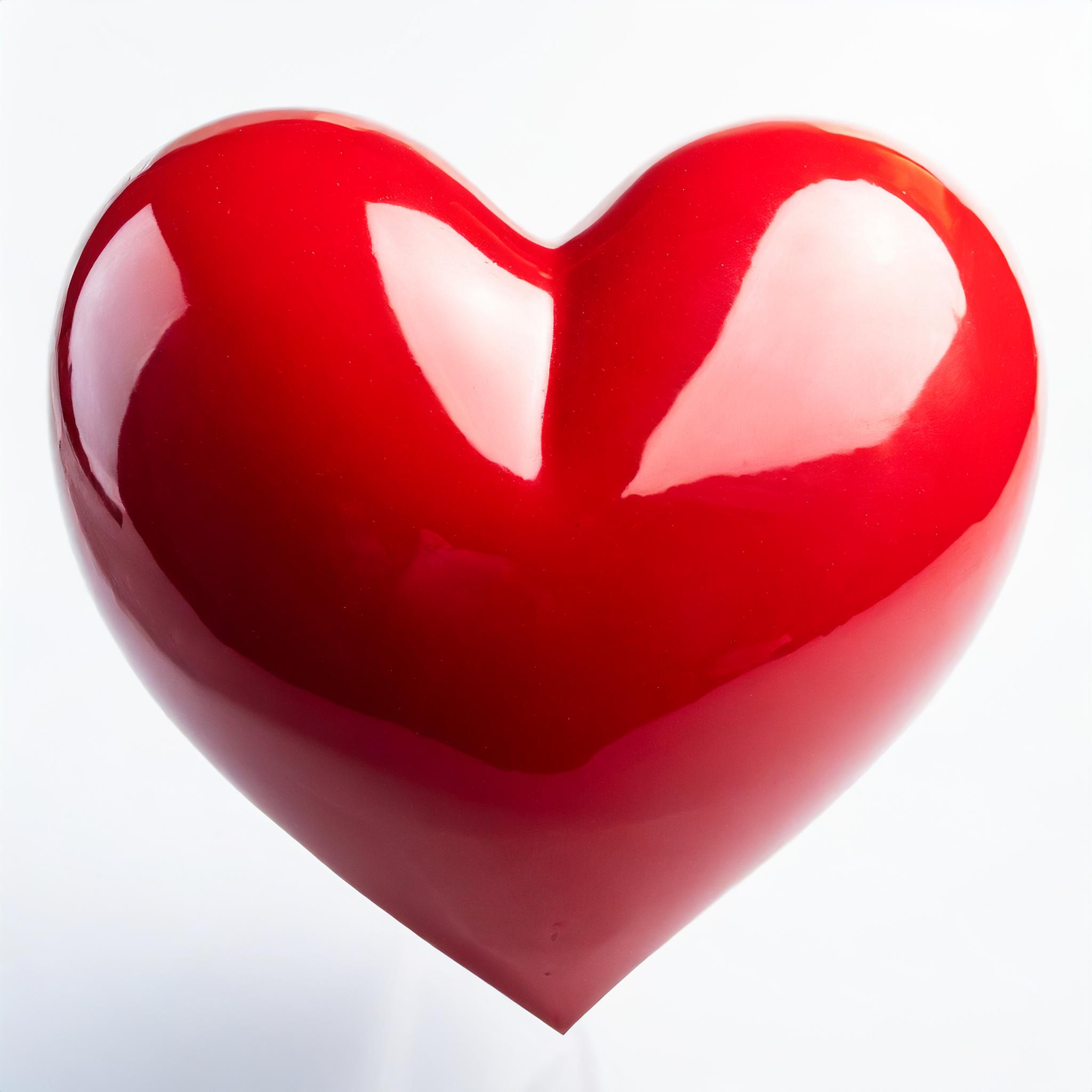 Sur un fond complètement blanc et uniforme, un cœur rouge bidimensionnel occupant tout le cadre tout en restant entier.