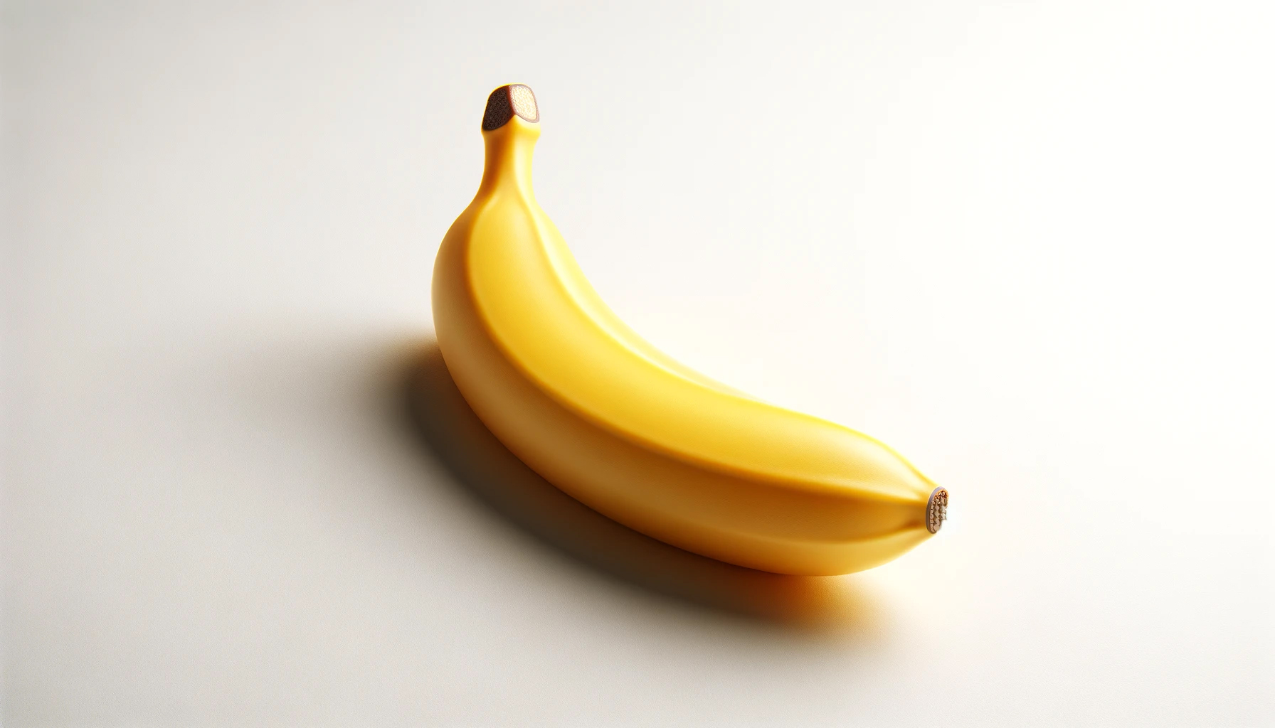Une image très détaillée et réaliste d'une banane jaune isolée sur un fond blanc uni. Le fruit occupe l'ensemble du cadre sans le dépasser, sans déborder. Une banane entière, non coupée en deux, et il n'y a qu'une seule banane. L'image est très précise, ce qui permet d'apprécier la texture de la peau. La banane est éclairée par une lumière douce, permettant tout de même de mettre en valeur sa forme. La banane est dépourvue de feuilles.