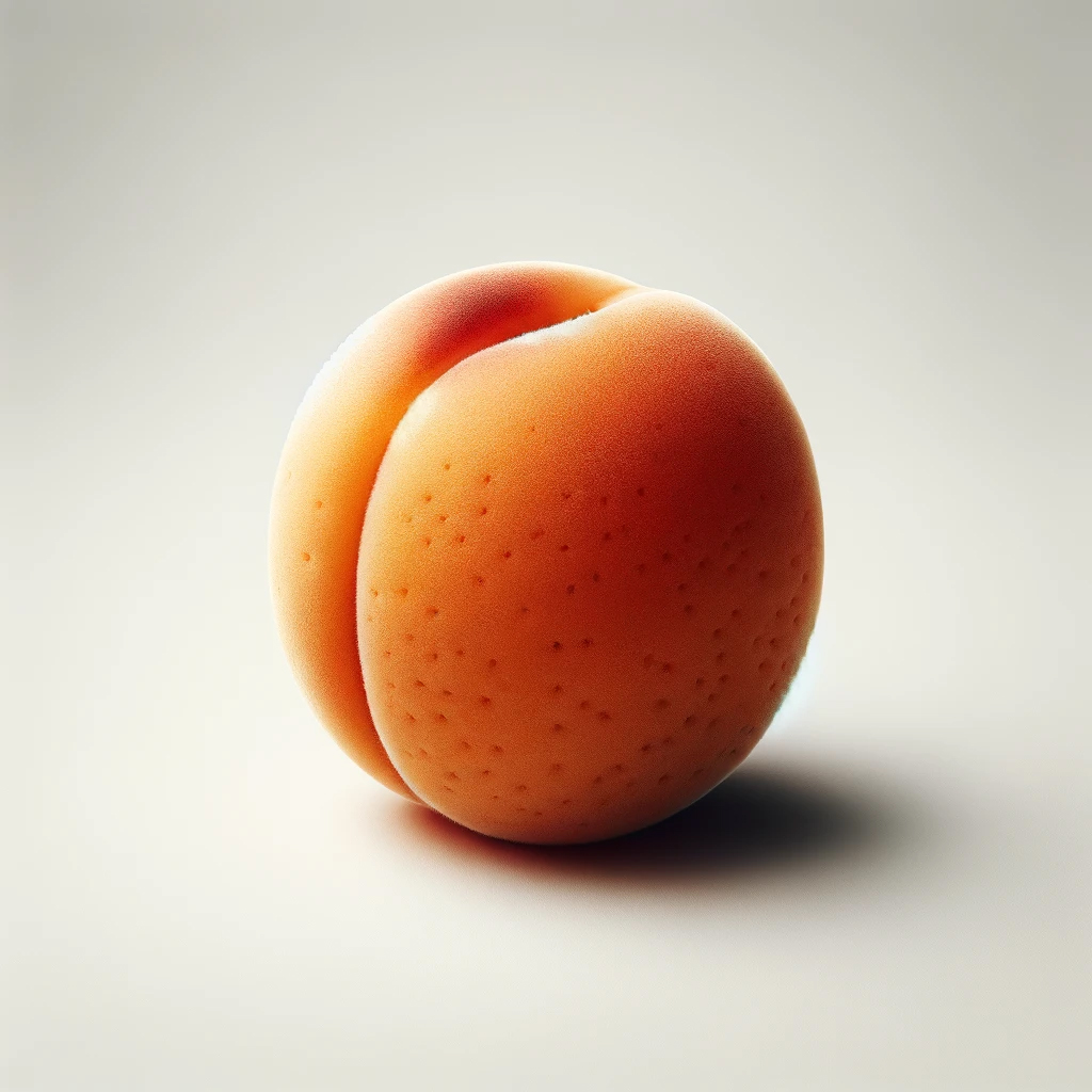 Une image très détaillée et réaliste d'un seul abricot entier isolé sur un fond blanc uni. Le fruit remplit entièrement le cadre sans dépasser ses limites. L'abricot n'est pas coupé, avec un seul abricot présent dans l'image. L'image est très précise, mettant en valeur la texture de la peau de l'abricot. L'abricot est éclairé par une lumière douce, qui souligne sa forme. L'abricot n'a pas de feuilles.