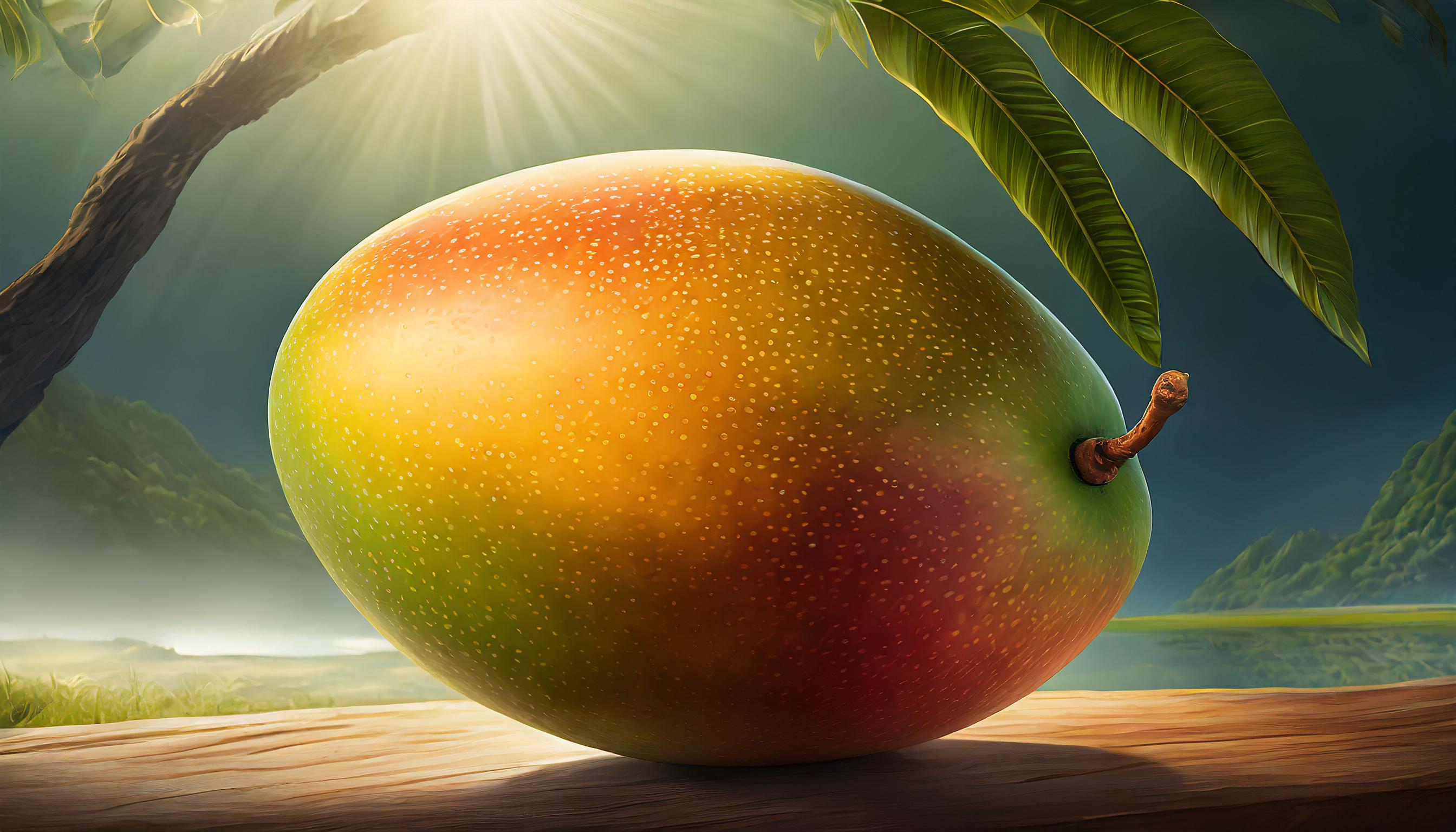 A highly detailed and realistic image of a single mango isolated on a plain white background. The fruit occupies the entire frame without exceeding its boundaries. The mango is whole, not cut in half, and there is only one mango. The image is very precise, showcasing the texture of the mango's skin. The mango is illuminated by soft light, highlighting its shape without leaves.